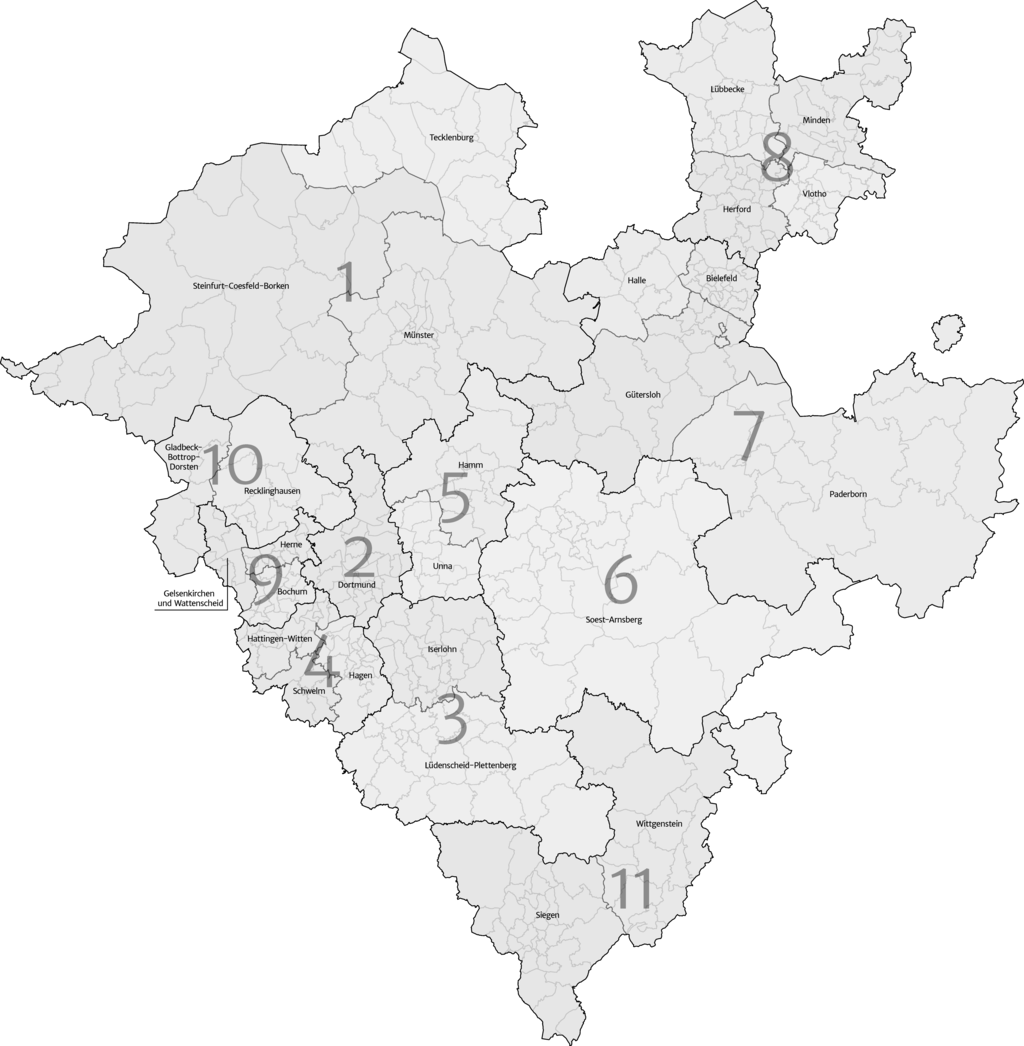 Die Kirchenkreise und Gestaltungsräume der Evangelischen Kirche von Westfalen.